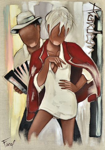 Toile de Pierre Farel Accordéoniste et la femme à la veste rouge